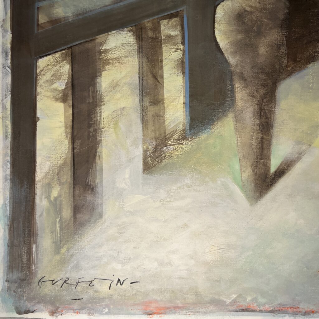 The atmosphere of his paintings is wrapped in a dance of mystery and veils of light. Gurfein works slowly, with materials from other times. The homemade tempera used is transparent glue derived from milk. The evanescent and intangible of his images oscillates between presence and reminiscence. His paintings are wrapped in mystery and veils of light, where images oscillate between presence and memory. These are not just artworks — they are gateways to other realms. We witness infinite, dreamlike landscapes and illuminated interiors.